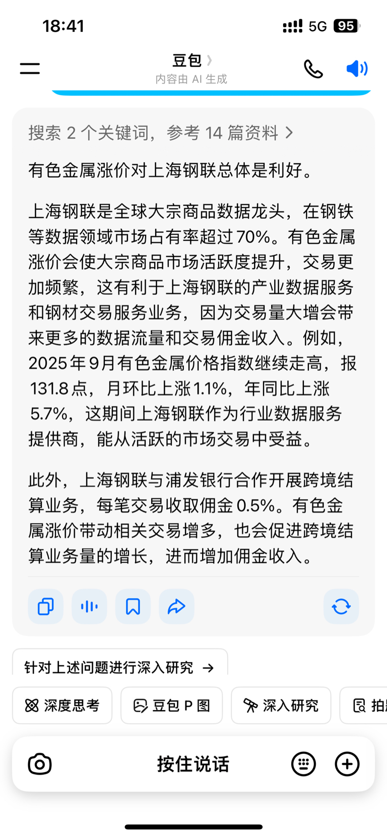$上海钢联(SZ300226)$ 有色金属涨价对上海钢联是利好的