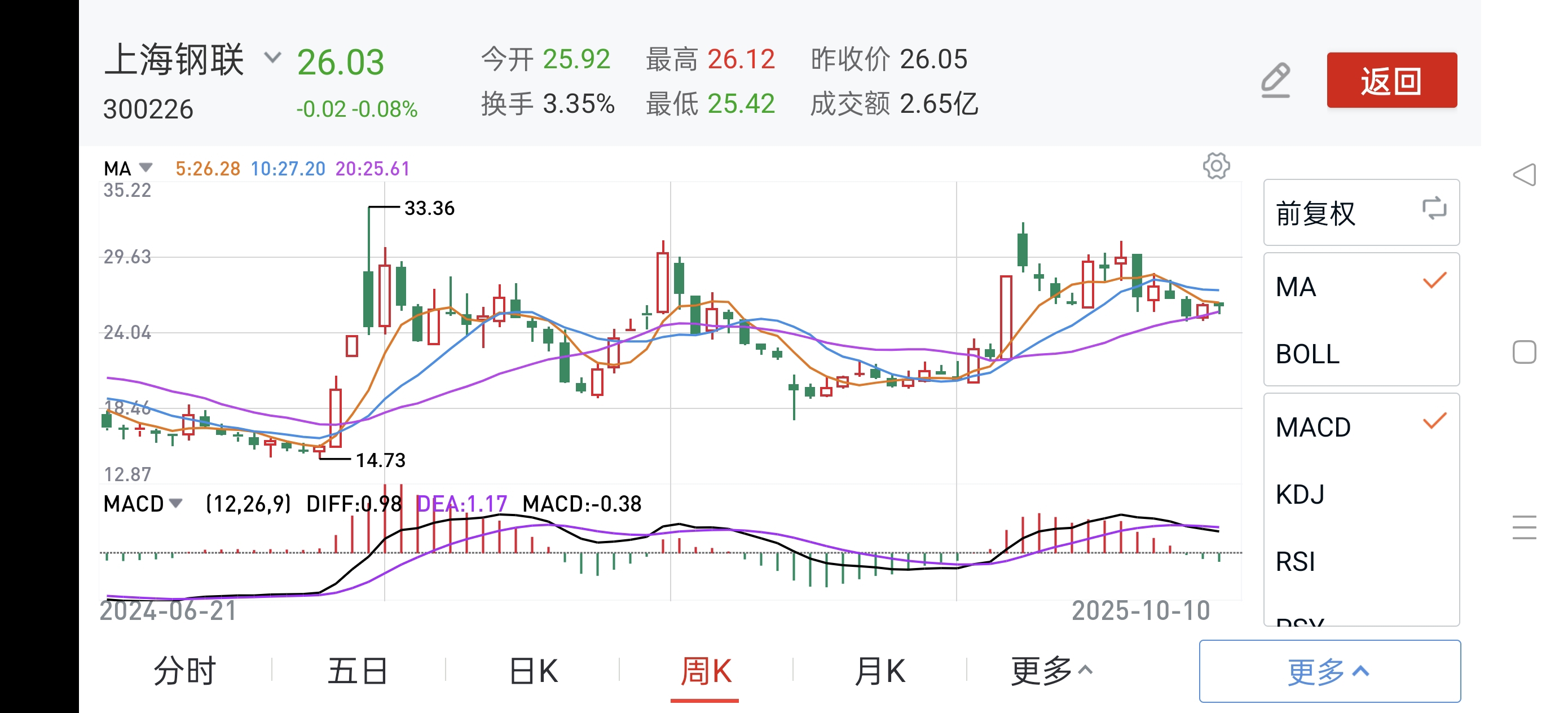 $上海钢联(SZ300226)$ 下周15元见,你们认为呢?至少周一周二跌30%-40%毫无悬念,在连续阴跌一两个月,参考去年9.24启动前和今年4月关税战,感觉15元附近会探底回升