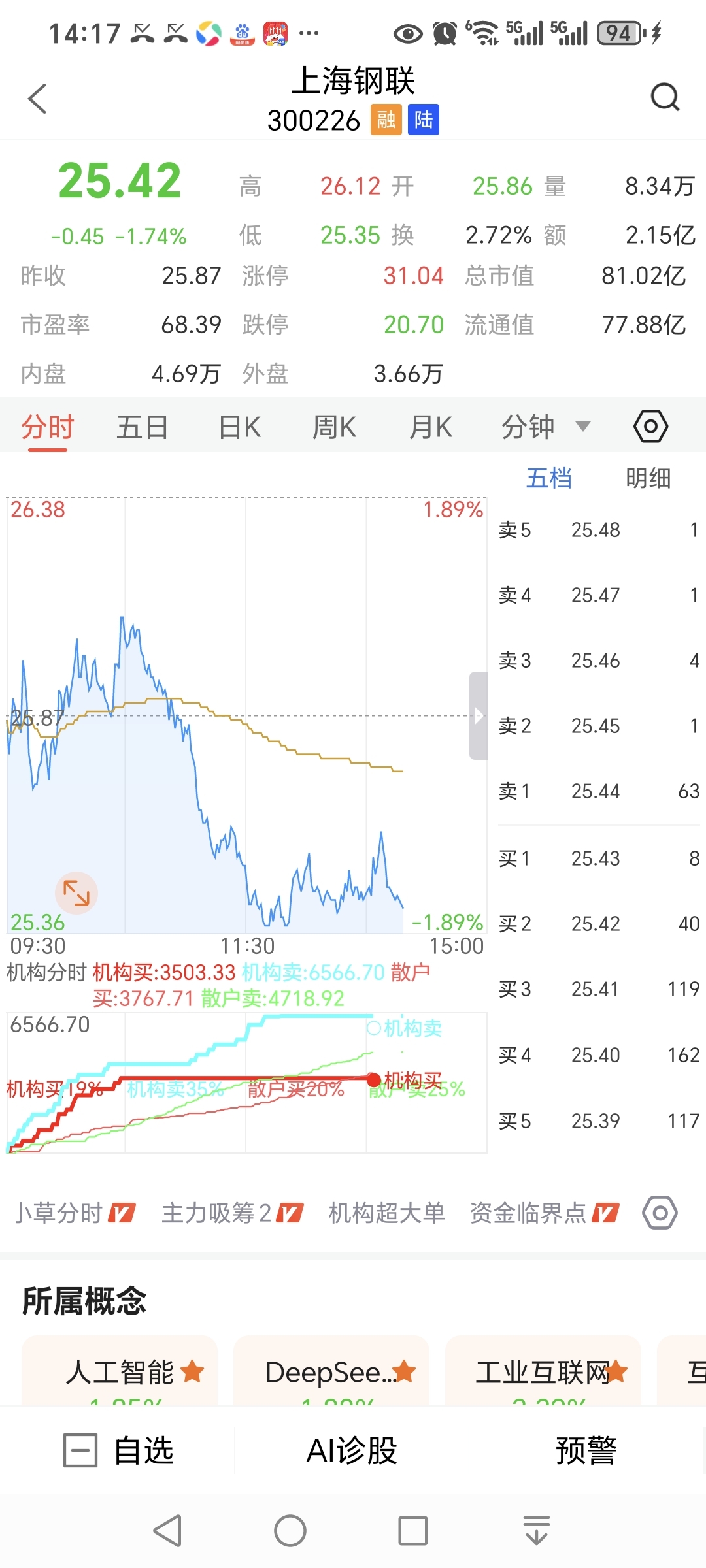 $上海钢联(SZ300226)$ 截止14:17分机构买3503万元,卖出6566万元,没救了,长期跌破60日线和60月线,长趋势向下,太弱了