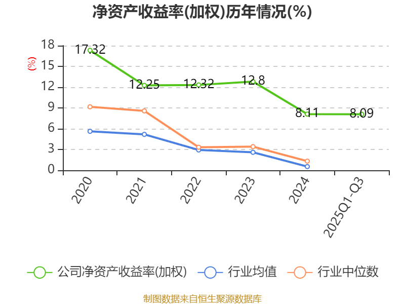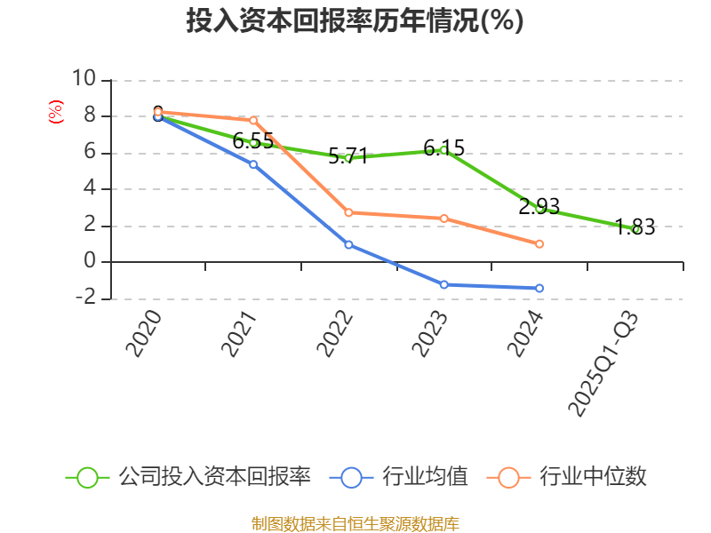 盈利能力方面, 2025年前三季度公司加权平均净资产收益率为8.09%,同比上升1.84个百分点。公司2025年前三季度投入资本回报率为1.83%,较上年同期下降0.61个百分点。