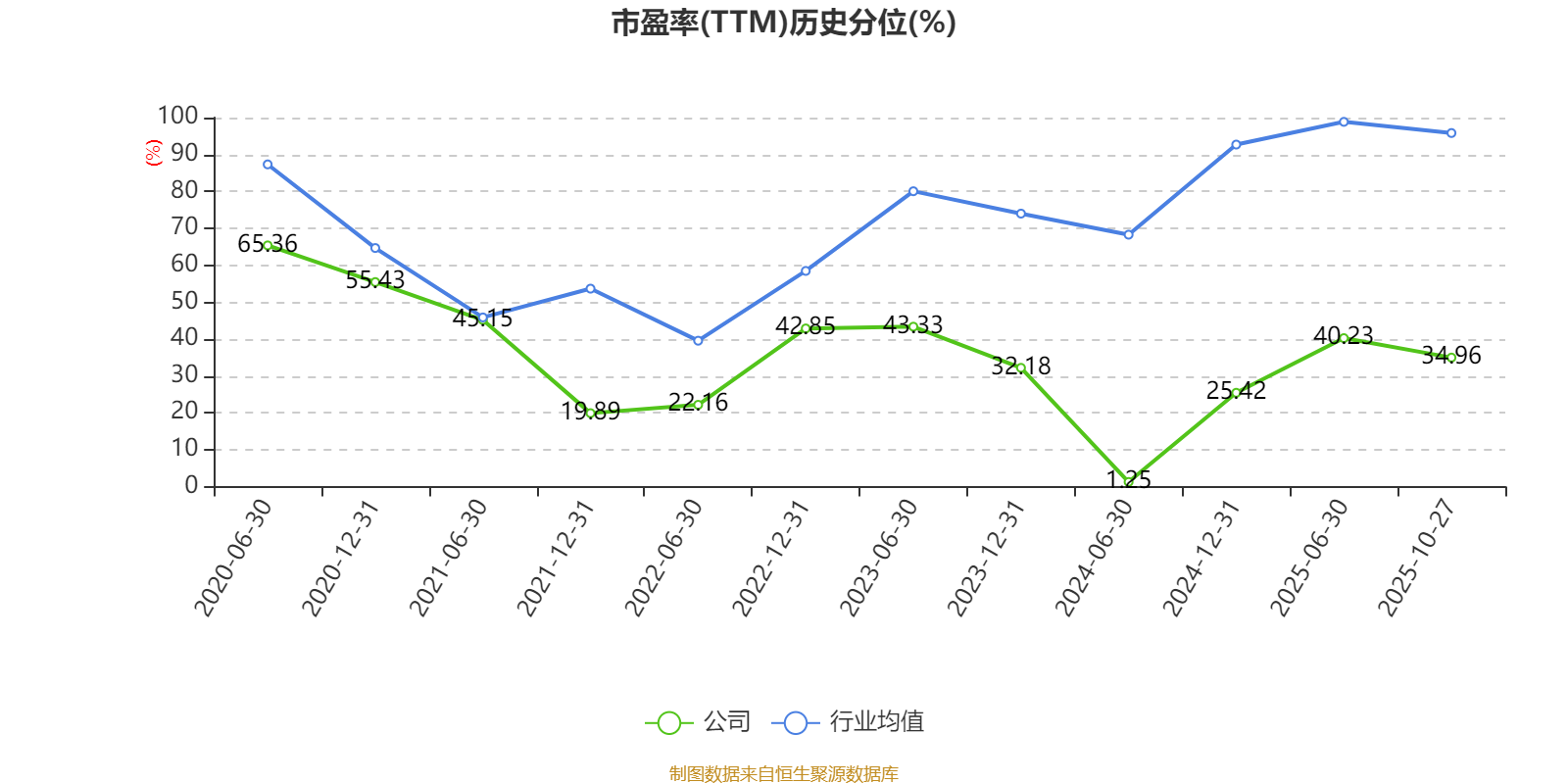 市盈率、市净率为负时,不显示当期分位数,会导致折线图中断。