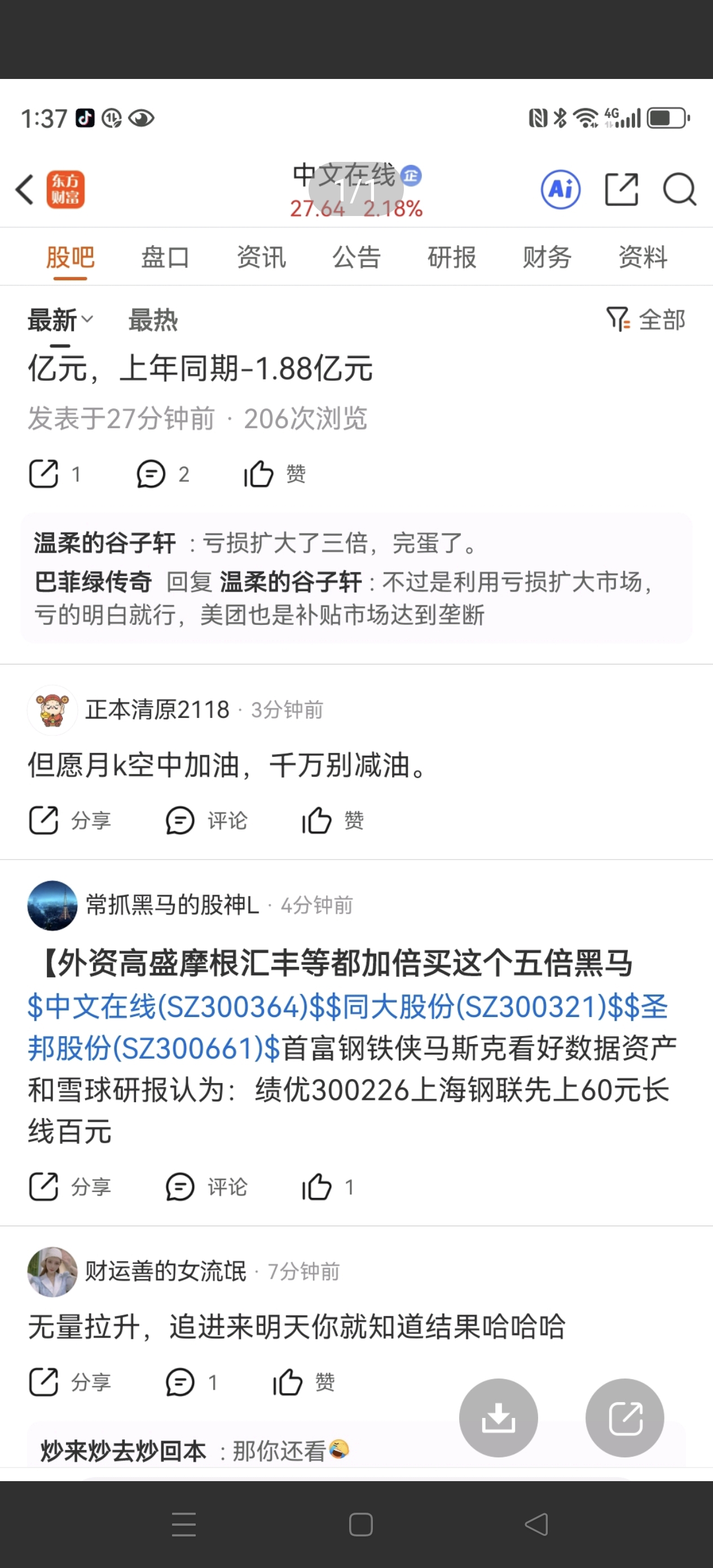 $上海钢联(SZ300226)$ 目前上海钢联的“托“遍天下,人气和股价都是靠托不择手段维持着,不晓得哪天崩盘