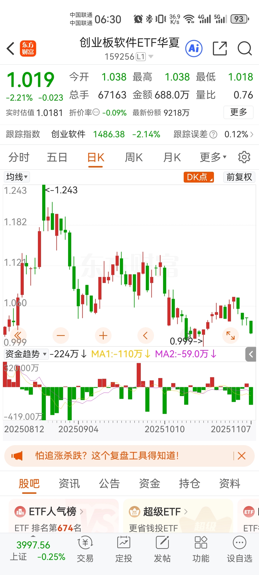 创业板软件跌一周了,螺纹钢期货也跌一周了,小钢也算是顺势而为了,走的很好了