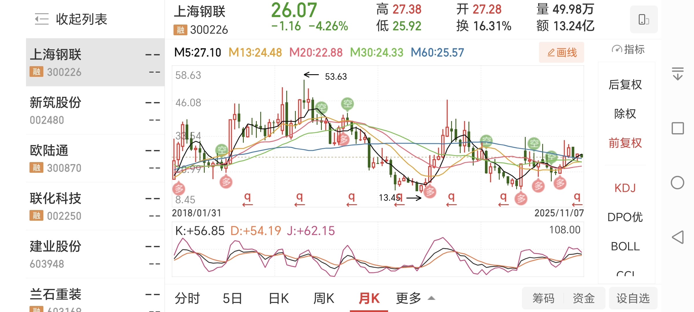 $上海钢联(SZ300226)$ 买票必须买月kdJ线的J线拐头朝上的票