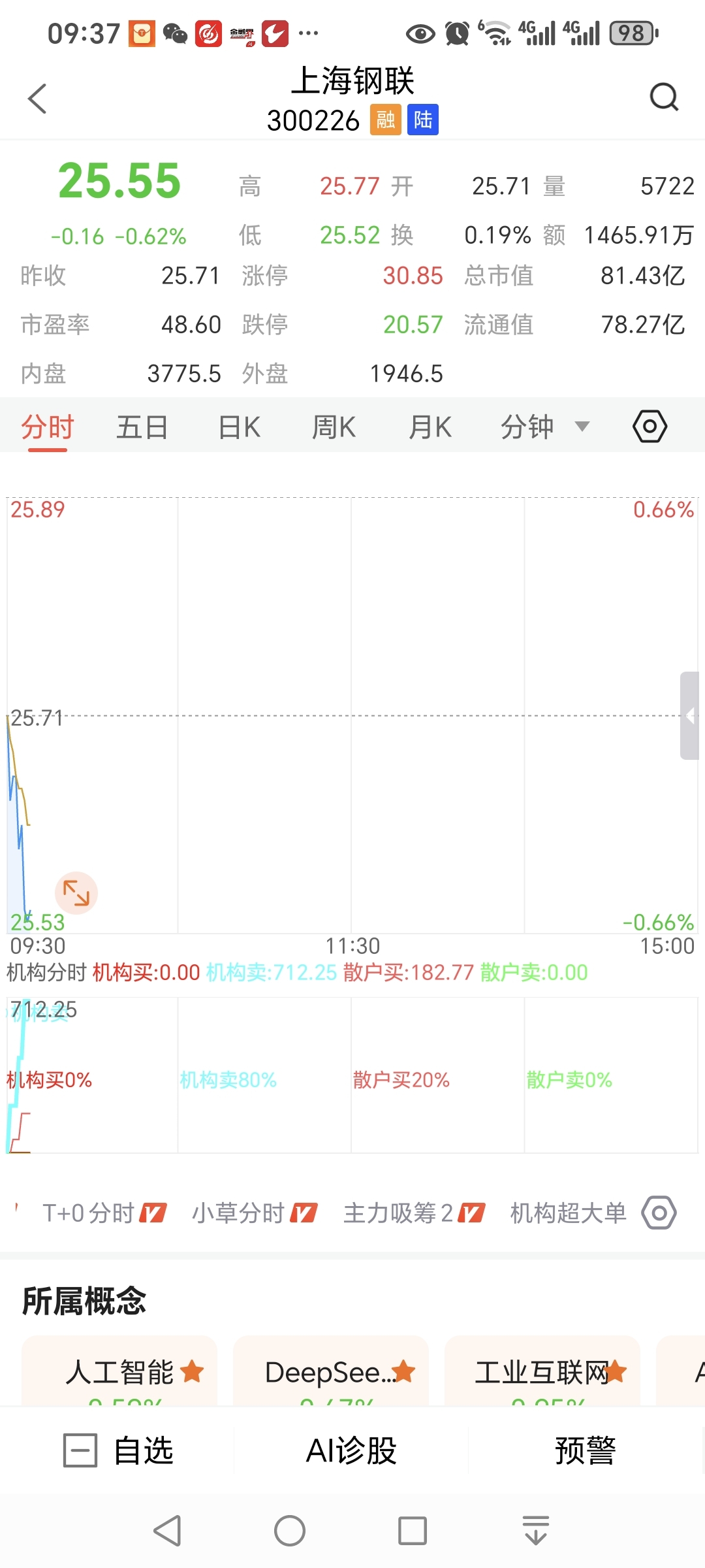 $上海钢联(SZ300226)$ 机构卖出比例80%,机构买入为0%,还要大跌破20元