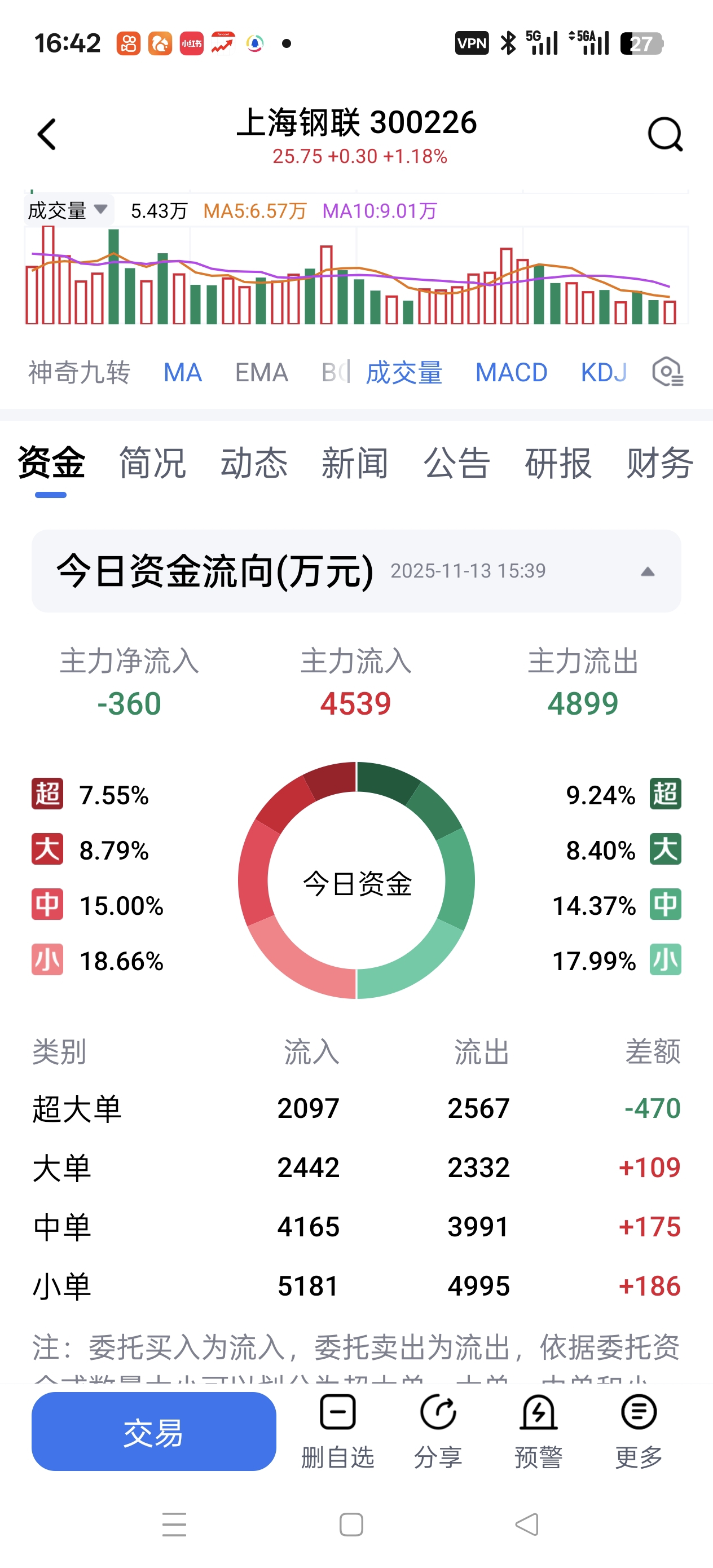 $上海钢联(SZ300226)$ 今天大盘涨势喜人, 上海钢联主力资金仍在净流出,无量被动小幅上涨明天继续探底无疑。
