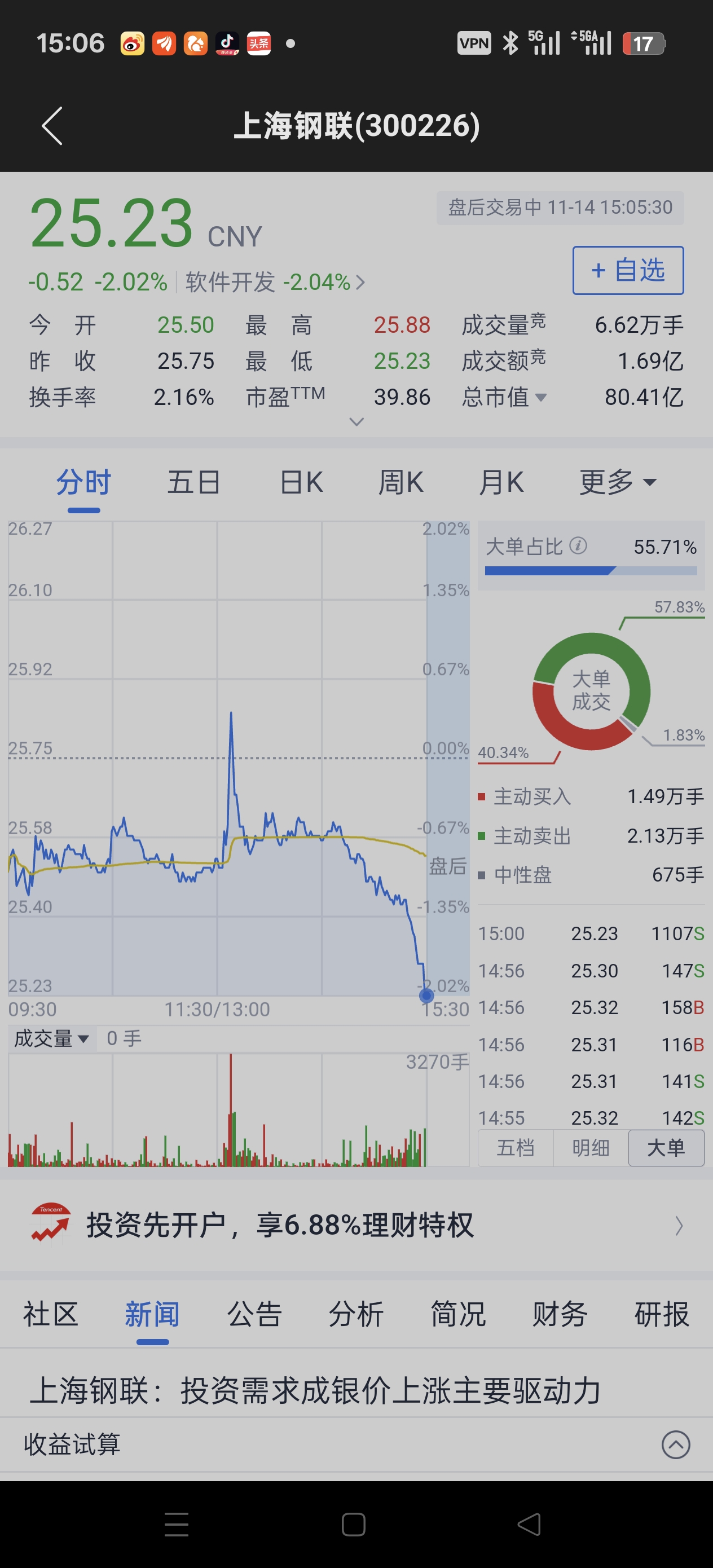 $上海钢联(SZ300226)$ 其实今天下午给了大家一次逃命的机会,不晓得有没有抓住的