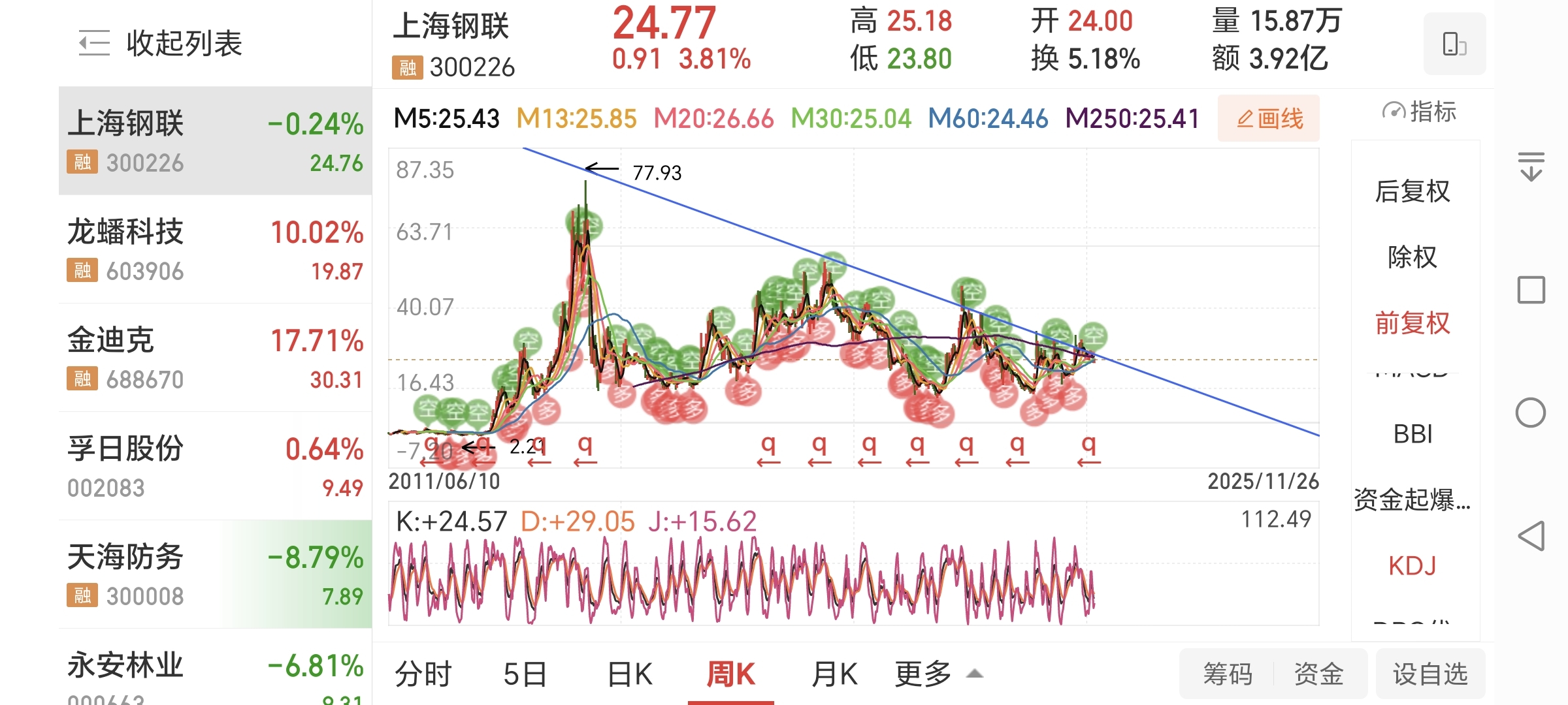 $上海钢联(SZ300226)$ 画了一条趋势线,大家看看浪费行情