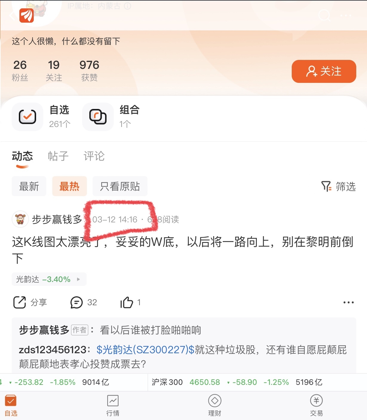 看看这个人是不是骗子,每到9.9,9.8,9.7就忽悠别人买进,把便宜让给新人。