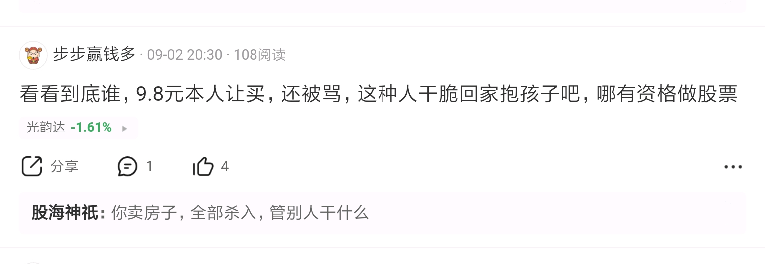 温馨提示: 1.根据《证券法》规定,禁止编造、传播虚假信息或者误导性信息,扰乱证券市场;2.用户在本社区发表的所有资料、言论等仅代表个人观点,与本网站立场无关,不对您构成任何投资建议。用户应基于自己的独立判断,自行决定证券投资并承担相应风险。《东方财富社区管理规定》