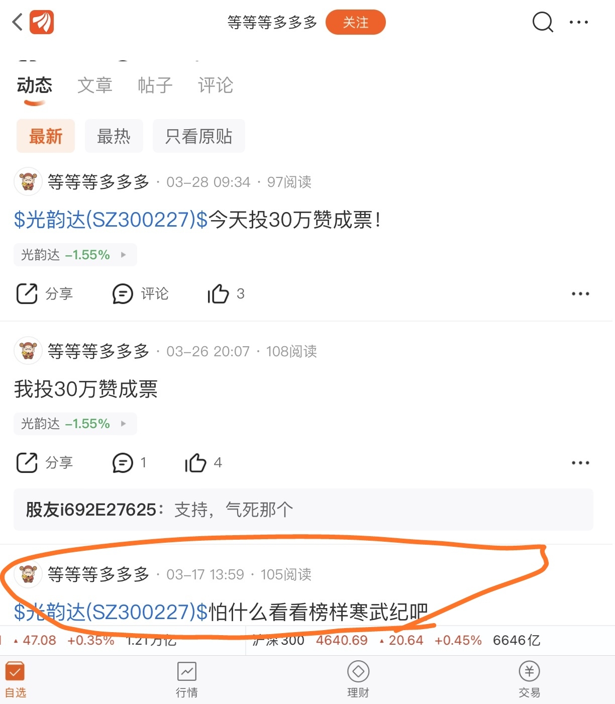 温馨提示: 1.根据《证券法》规定,禁止编造、传播虚假信息或者误导性信息,扰乱证券市场;2.用户在本社区发表的所有资料、言论等仅代表个人观点,与本网站立场无关,不对您构成任何投资建议。用户应基于自己的独立判断,自行决定证券投资并承担相应风险。《东方财富社区管理规定》