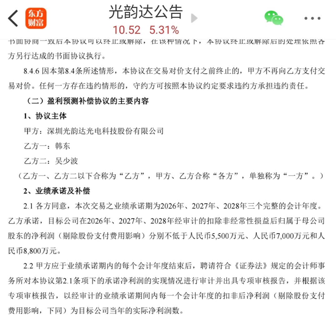 $光韵达(SZ300227)$ 有业绩承诺,不错哟