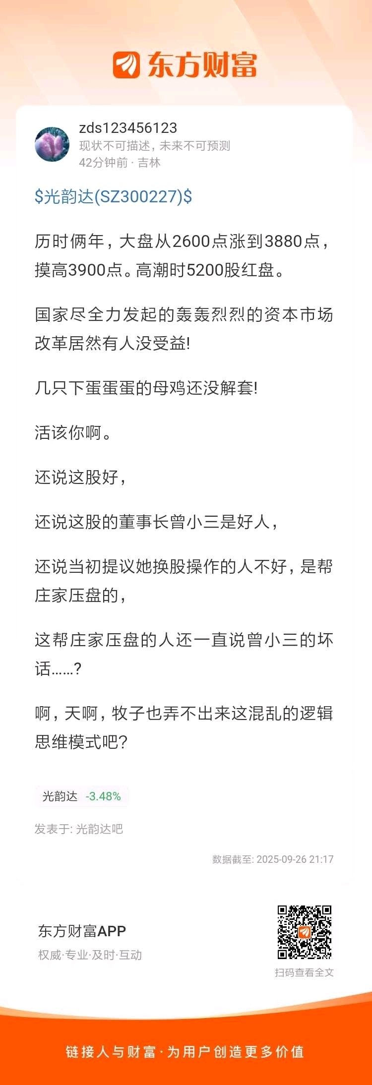 $光韵达(SZ300227)$ 进来就是为支持曾小三搞光腚增发的鸡婆,半梦半醉,八爪鳖鱼,你们多多买进啊。