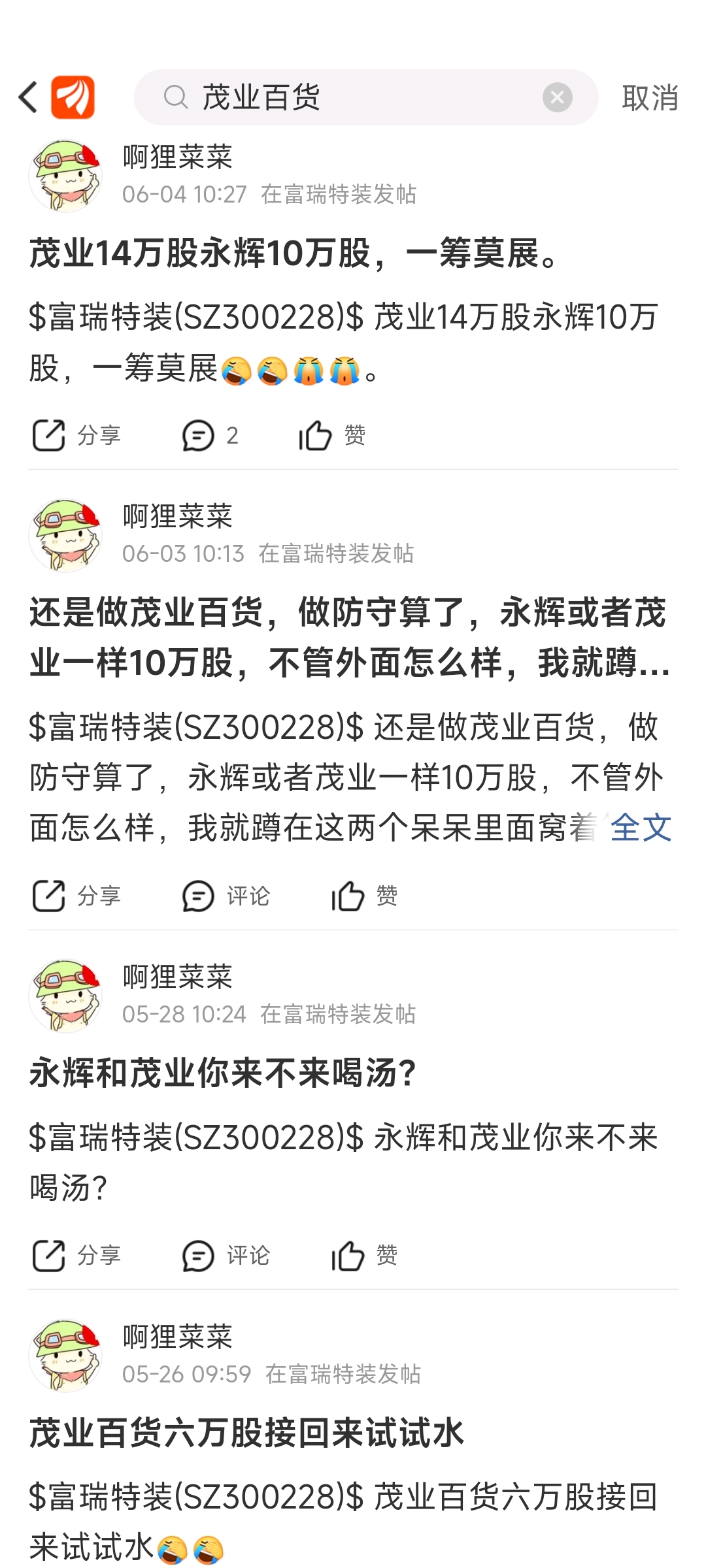 $富瑞特装(SZ300228)$ 茂业五天五连板后炸板了,非常可惜我没扛到现在,14万股茂业地板上卖掉了