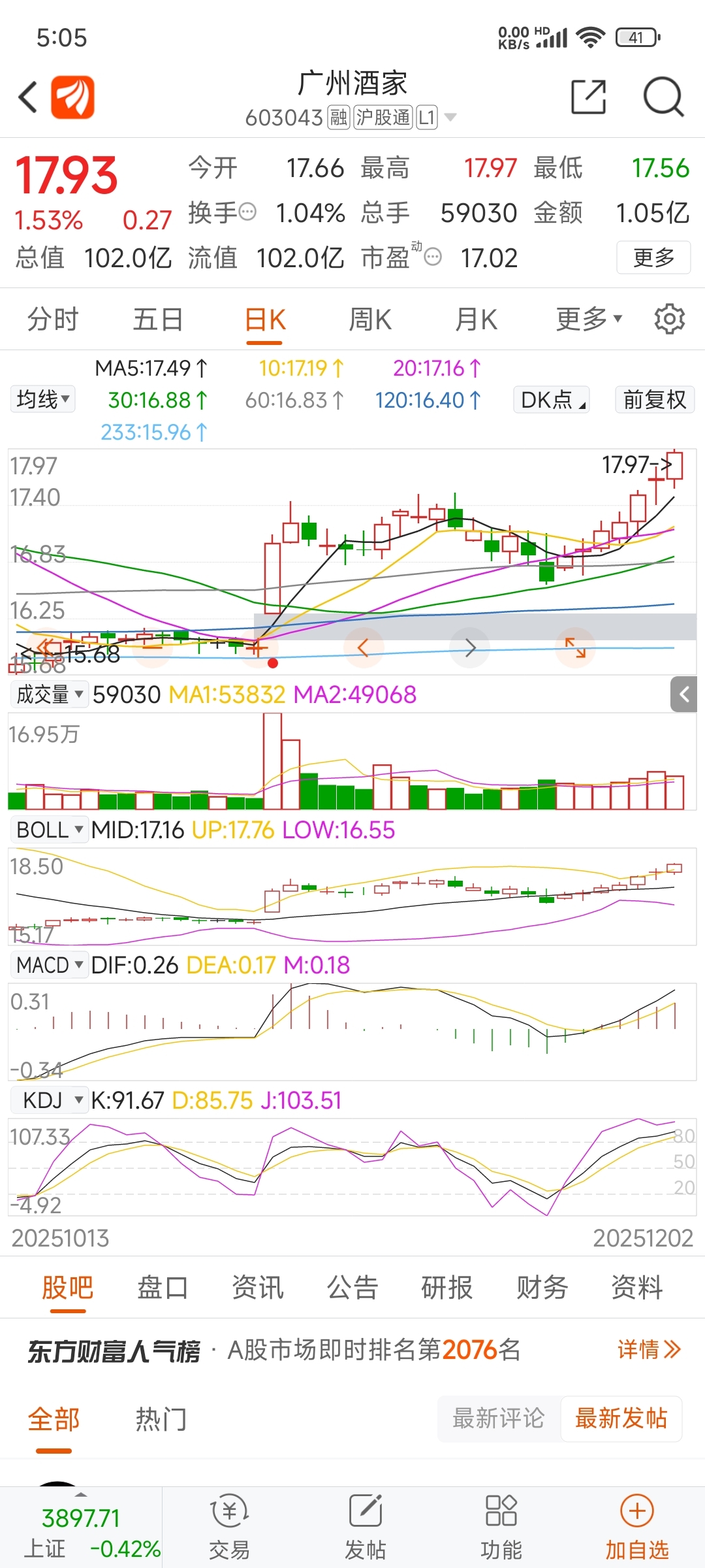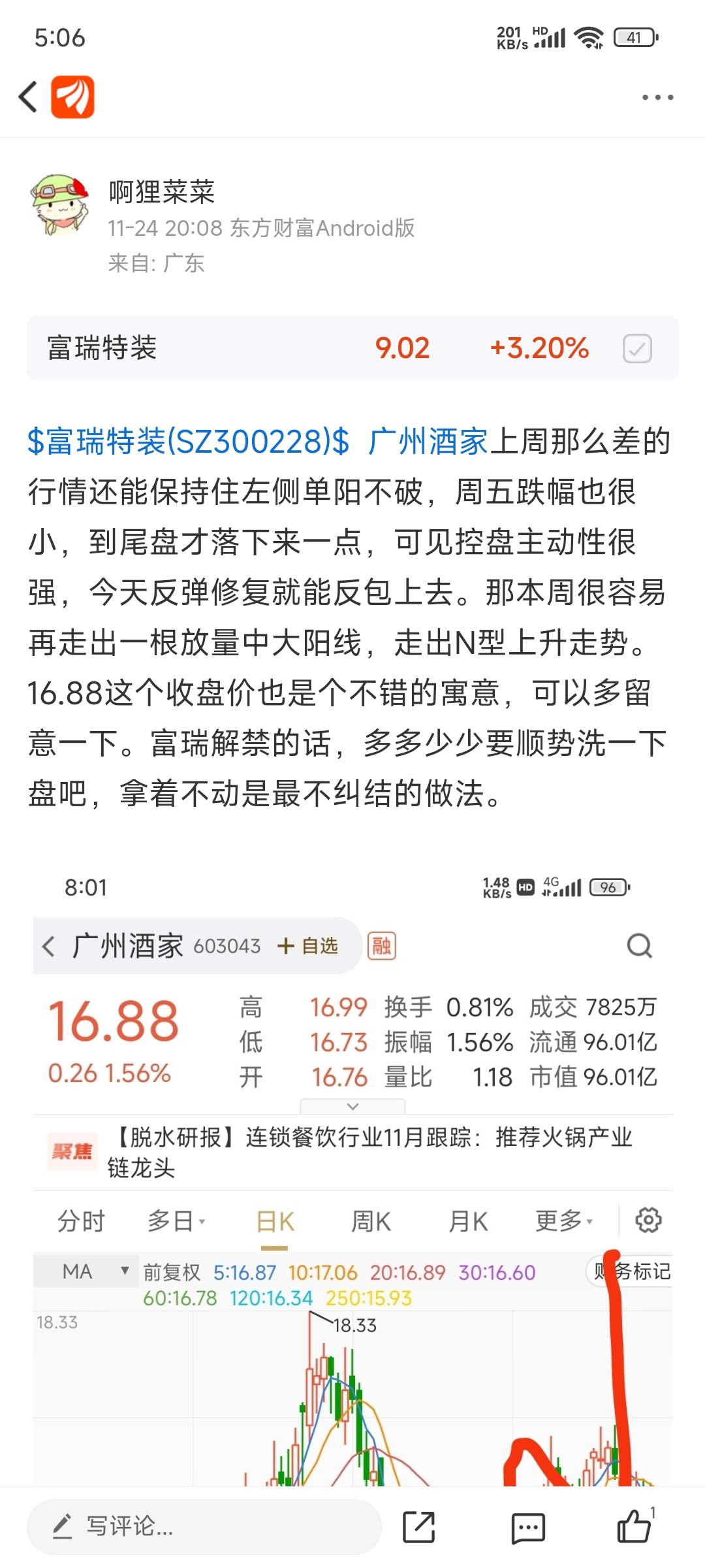 广州酒家7连阳,这种小步子一点点上涨的趋势票有喜欢的吗?富瑞明天继续收阳继续上涨