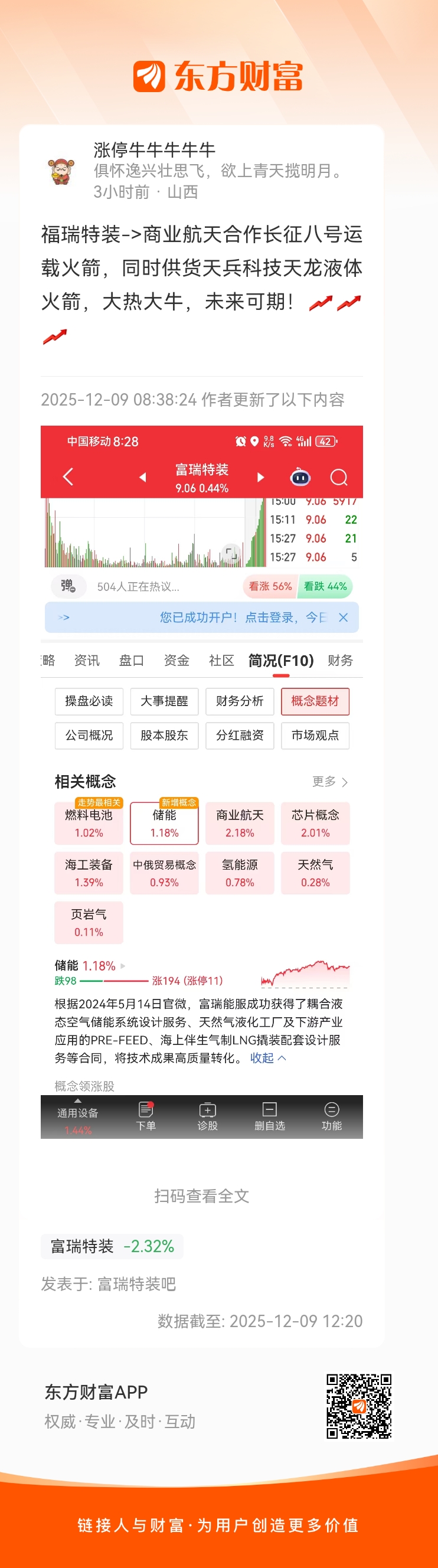 福瑞特装->商业航天合作长征八号运载火箭,同时供货天兵科技天龙液体火箭,大热大牛,未来可期!