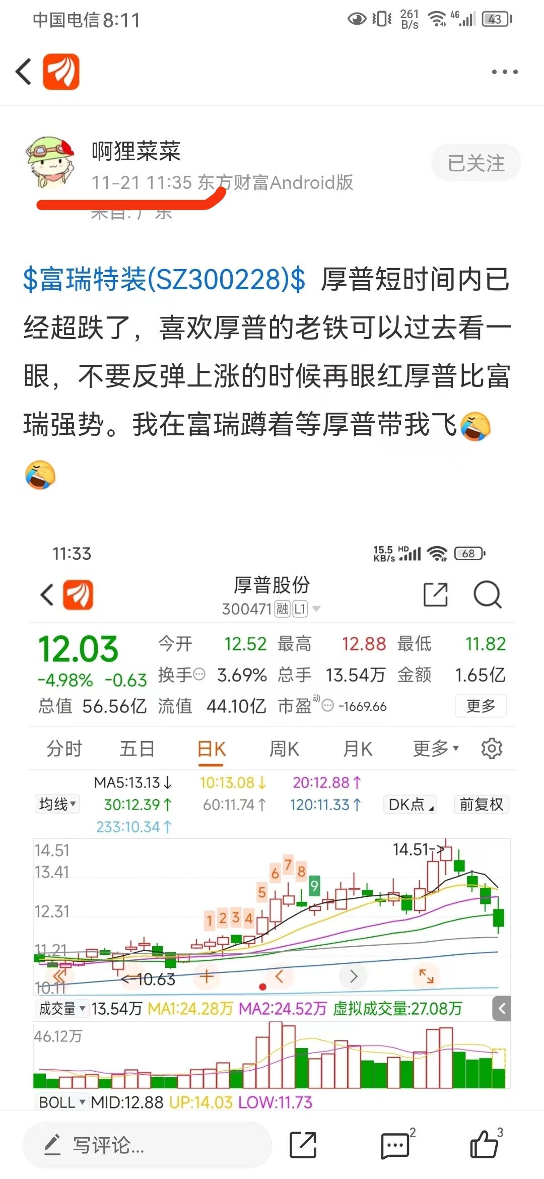 温馨提示: 1.根据《证券法》规定,禁止编造、传播虚假信息或者误导性信息,扰乱证券市场;2.用户在本社区发表的所有资料、言论等仅代表个人观点,与本网站立场无关,不对您构成任何投资建议。用户应基于自己的独立判断,自行决定证券投资并承担相应风险。《东方财富社区管理规定》