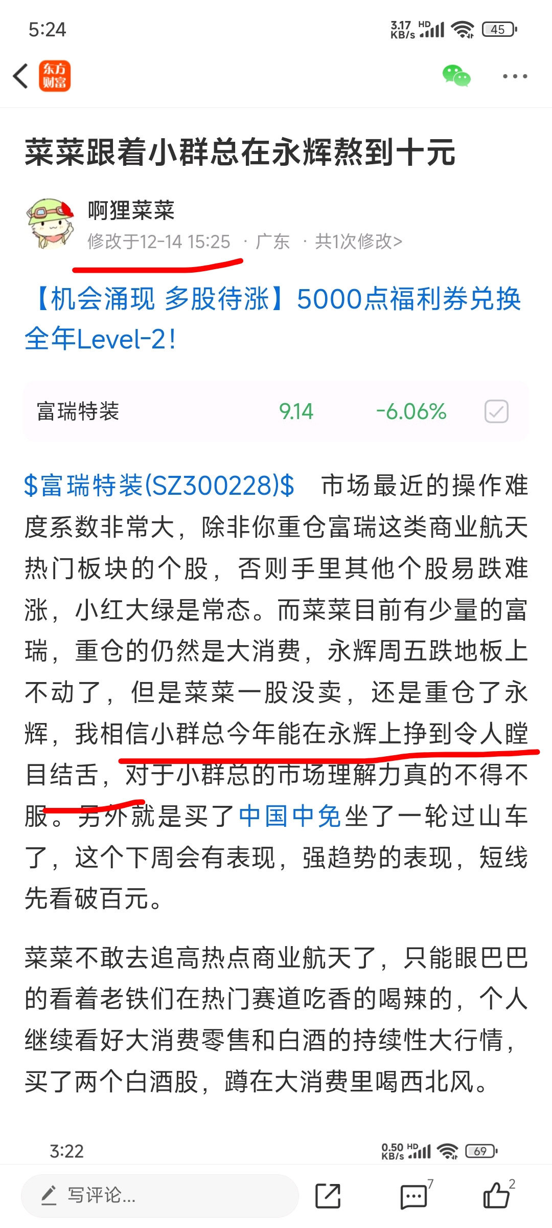 $富瑞特装(SZ300228)$ 永辉出龙虎榜了,小群总今天加仓3.9个小目标,他现在手里买了七个多小目标的永辉,不知道明天能不能破百亿成交,来其他游资机构量化同车,否则一家独大很难走远呀!
