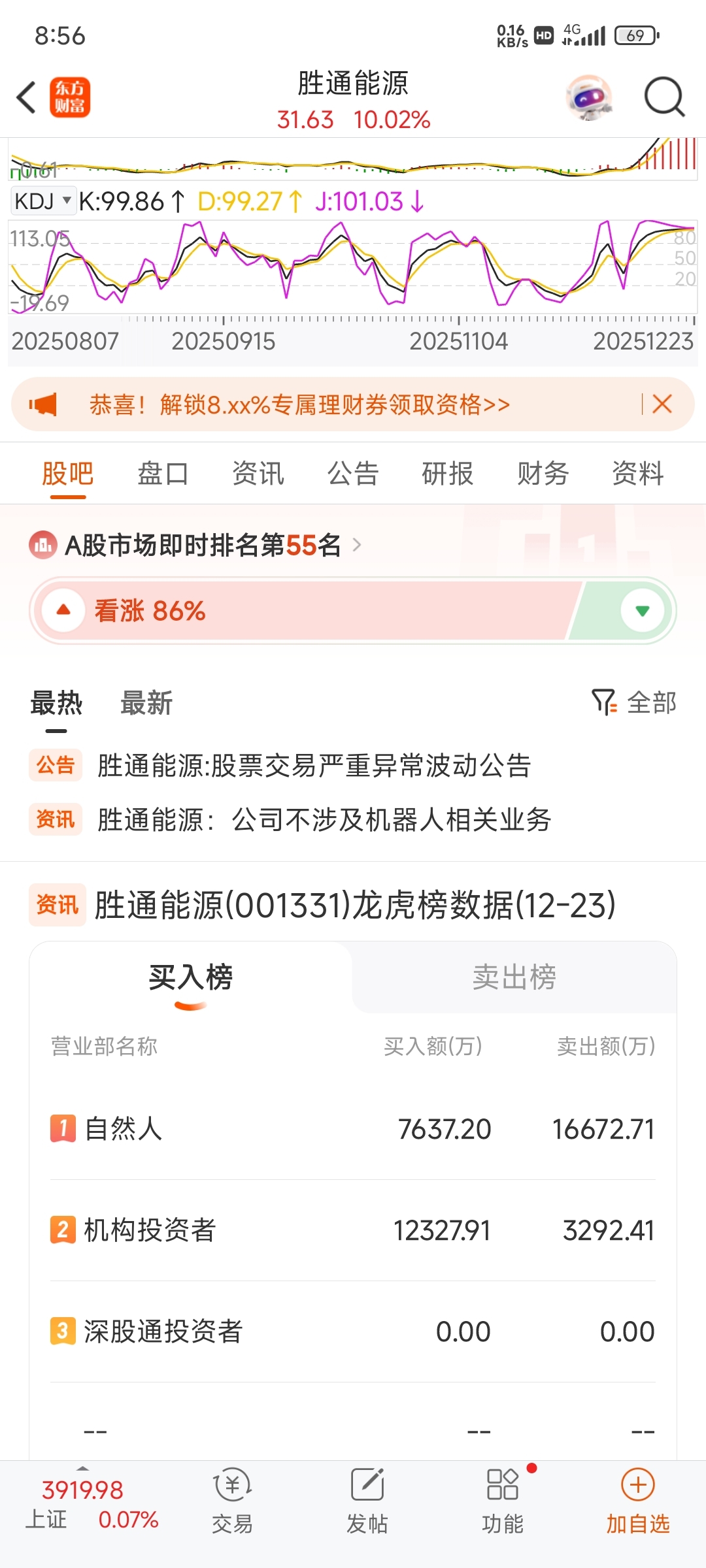 八连板的胜通,能源还是没有逃过监管,并且龙虎榜还是自然人那种榜,明天的行情怕是4
