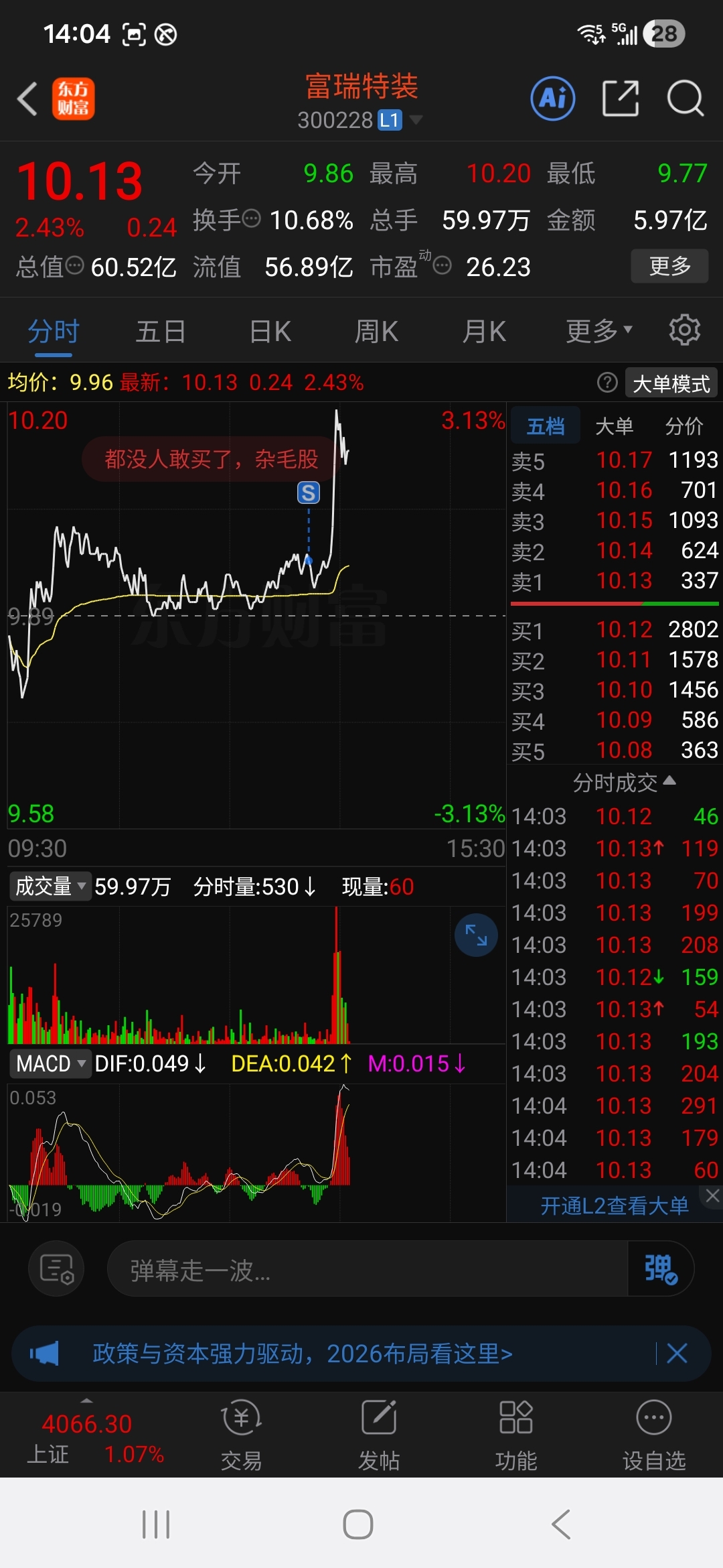 $富瑞特装(SZ300228)$ 就盯着我这几万股,你玛