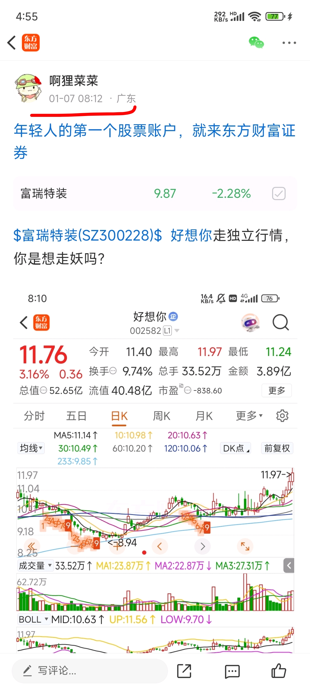 $富瑞特装(SZ300228)$ 从量能来看,好想你应该是下周一开始走连板行情了。接下来看七匹狼的业绩能不能更加炸裂更加大超预期吧。富瑞会不会也来一个业绩惊喜呢?如果现在不出业绩,或许是打算等天龙三号利好大涨之后再出业绩利好配合高位撤退吧。