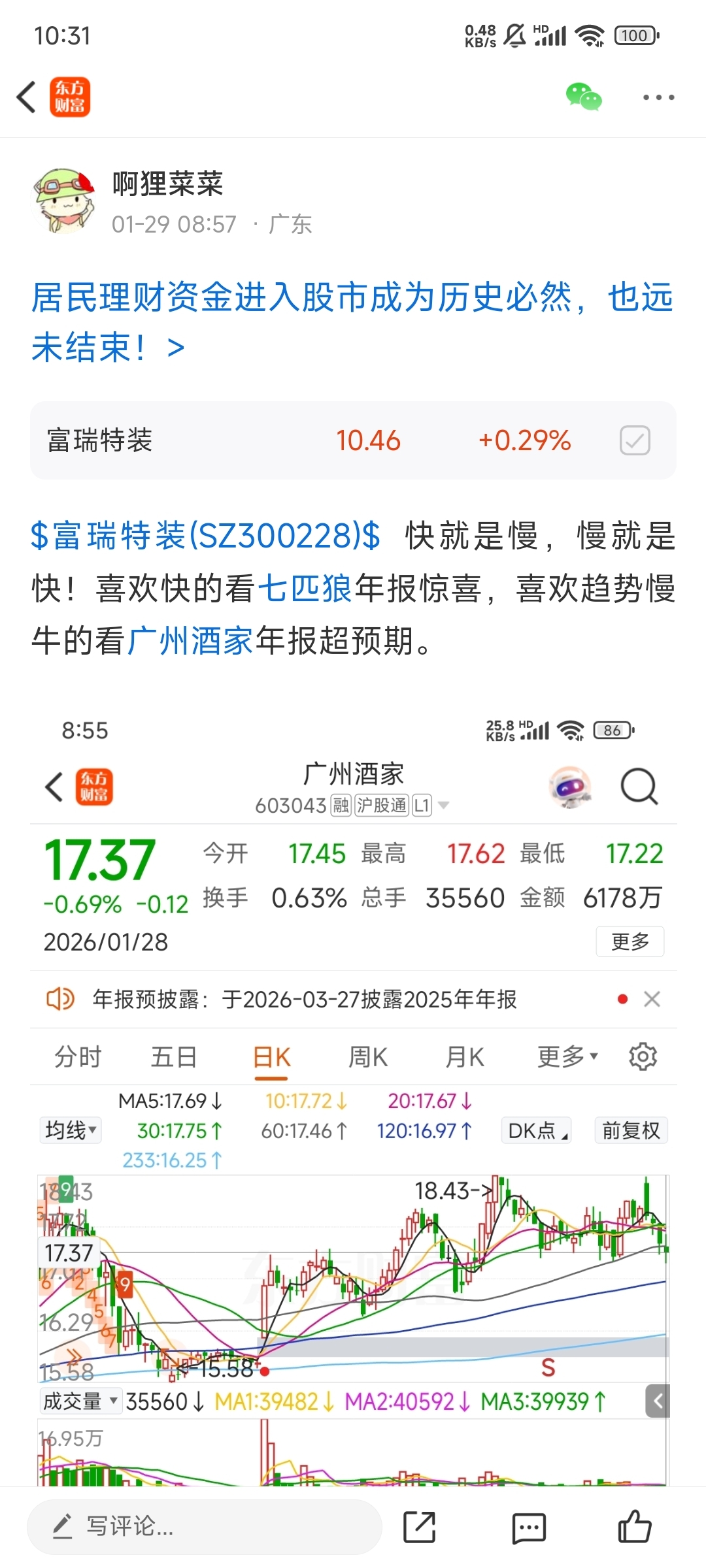 温馨提示: 1.根据《证券法》规定,禁止编造、传播虚假信息或者误导性信息,扰乱证券市场;2.用户在本社区发表的所有资料、言论等仅代表个人观点,与本网站立场无关,不对您构成任何投资建议。用户应基于自己的独立判断,自行决定证券投资并承担相应风险。《东方财富社区管理规定》