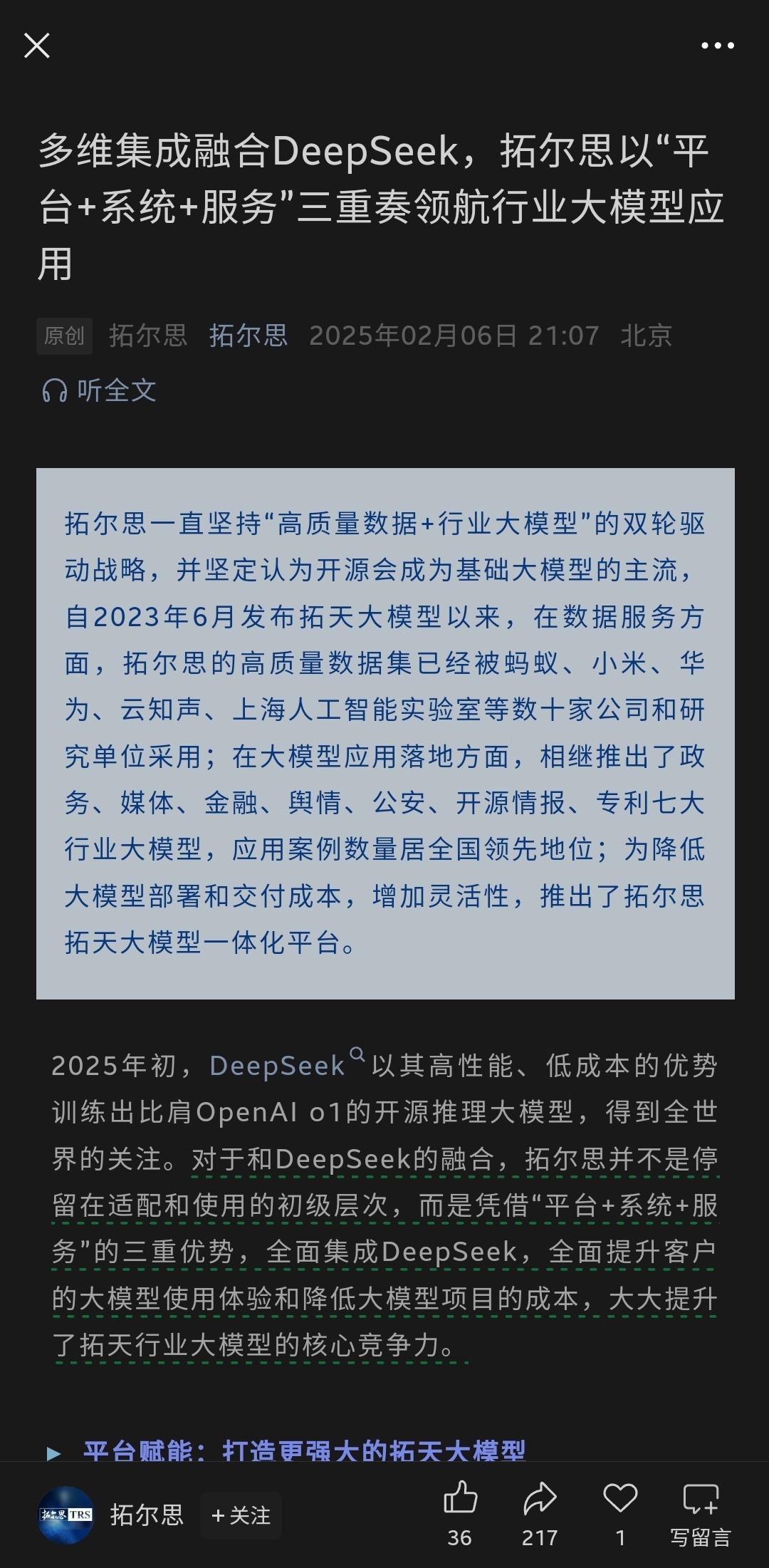 $拓尔思(SZ300229)$ 拓尔思官方微信网站