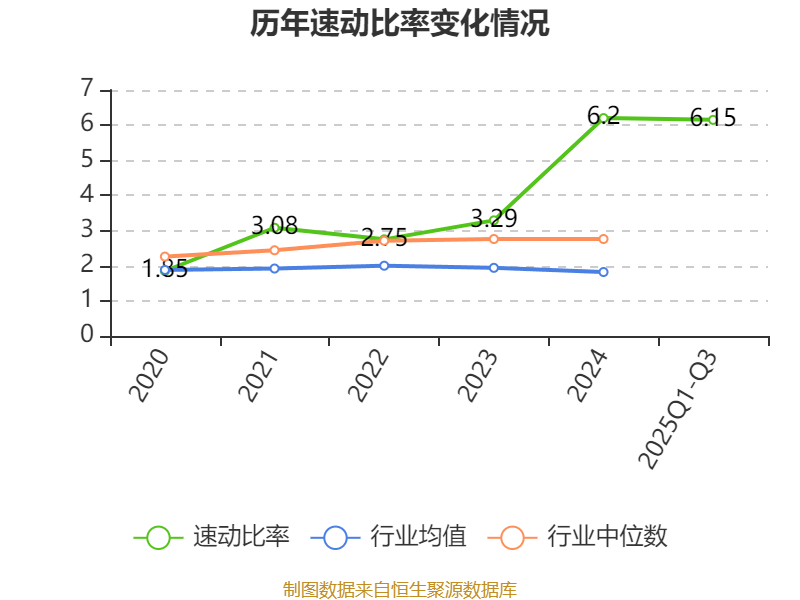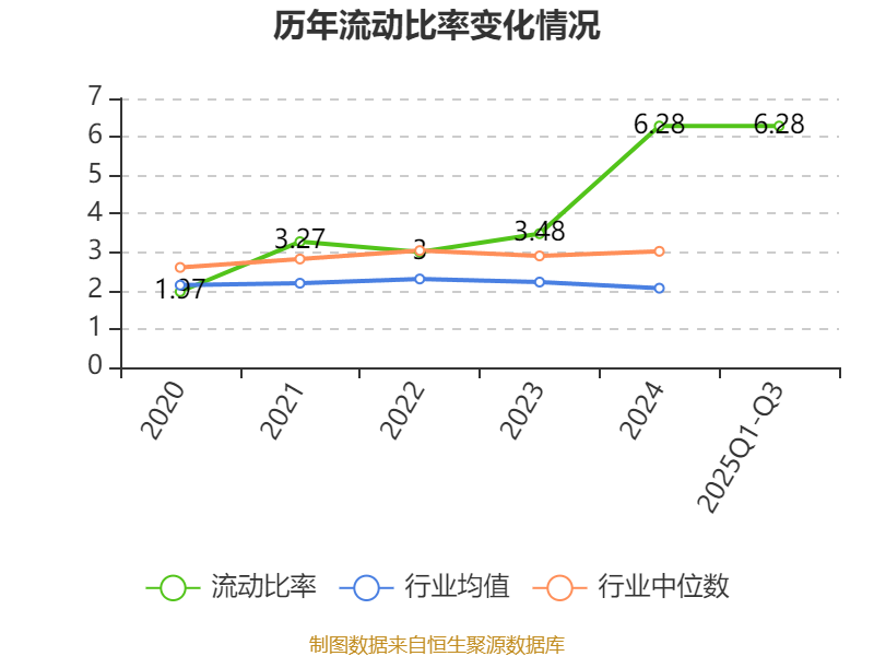 2025年前三季度,公司流动比率为6.28,速动比率为6.15。