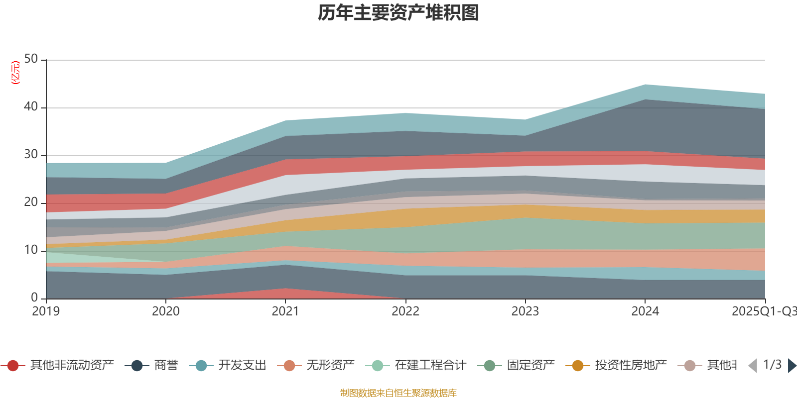 资产重大变化方面,截至2025年三季度末,公司无形资产较上年末增加27.91%,占公司总资产比重上升2.77个百分点;合同资产较上年末减少24.55%,占公司总资产比重下降1.72个百分点;开发支出较上年末减少28.39%,占公司总资产比重下降1.51个百分点;交易性金融资产合计较上年末减少11.77%,占公司总资产比重下降0.62个百分点。