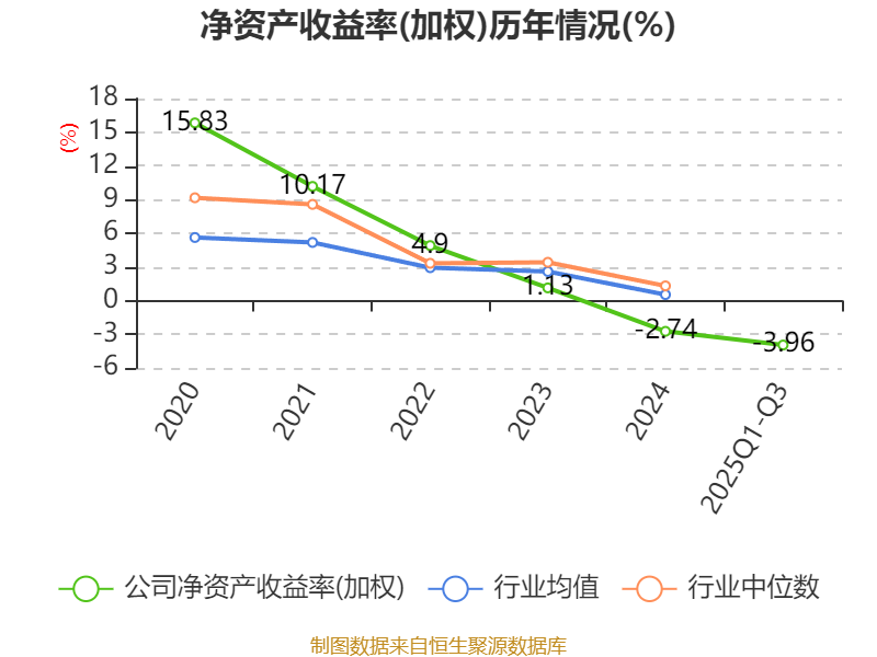 盈利能力方面, 2025年前三季度公司加权平均净资产收益率为-3.96%,同比下降5.28个百分点。公司2025年前三季度投入资本回报率为-4.05%,较上年同期下降5.21个百分点。