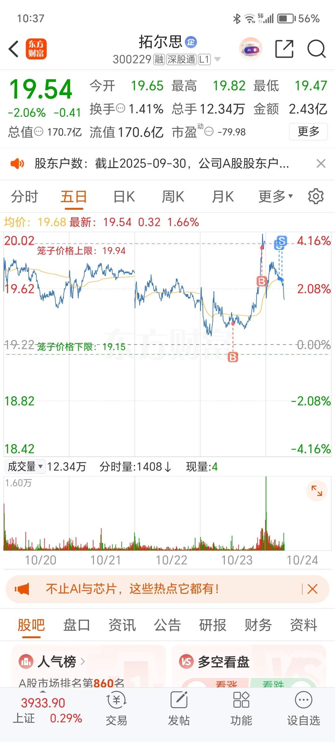 $拓尔思(SZ300229)$ 正好手续费不用出钱,不亏不赚