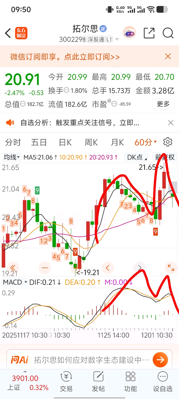 $拓尔思(SZ300229)$ 不妙啊顶背离
