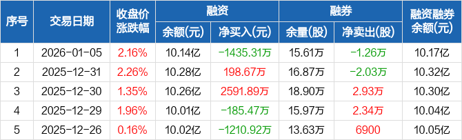 拓尔思:融资净偿还1435.31万元,融资余额10.14亿元(01-05)
