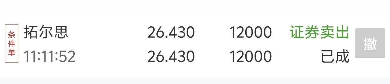 ,算了,成本不到20,26.43成交,赚了七万也不少了。第一次买这个票亏了二十个点割在地板上,至今依然心生敬畏,几次都让它跑了,这次是抓成功了,得偿所愿了,现在这个位置涨可能不多,但是事无绝对,注意风险,最后祝各位老板投资顺利,平安发大财!