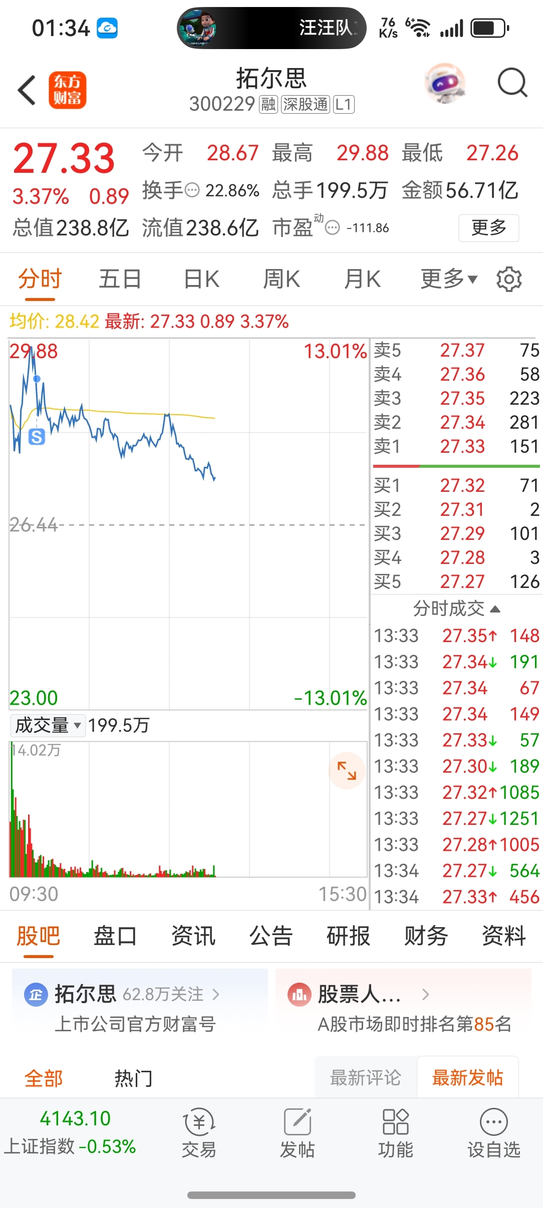 $拓尔思(SZ300229)$ 卖在人声鼎沸处,感谢朱莉