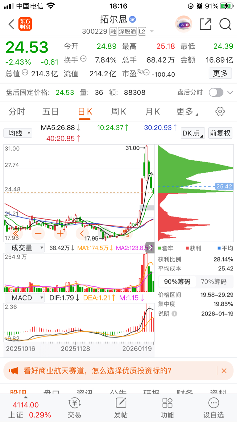 $拓尔思(SZ300229)$ 缩量下跌,跌幅收窄,十日线获得有效支撑,期待明天主力强势反攻。#收盘点评# #炒股日记# #复盘记录# #实盘记录#