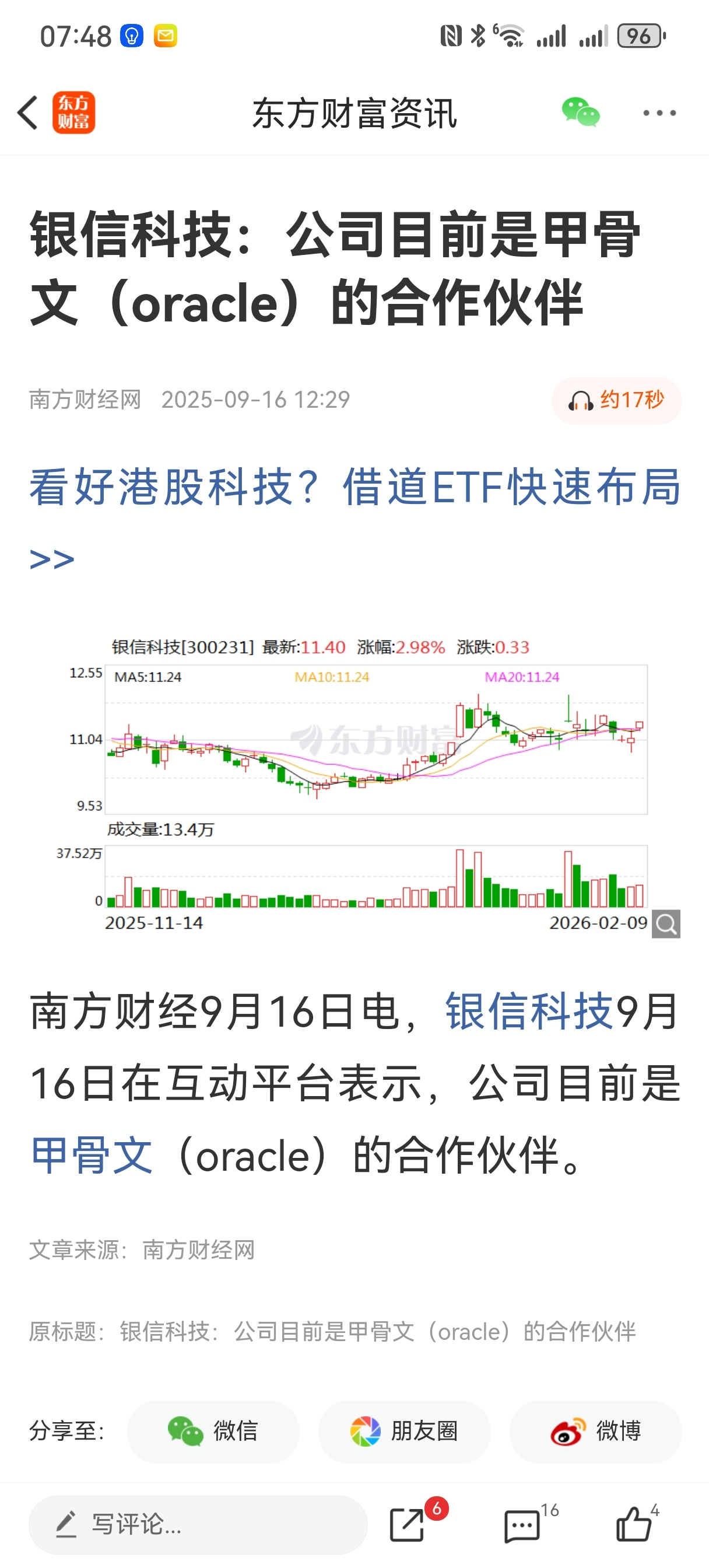 $银信科技(SZ300231)$ 甲骨文大涨,不知道有用没?