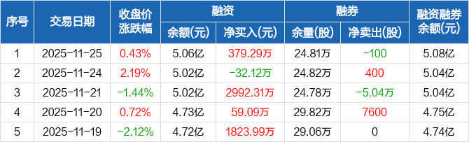 洲明科技:融资净买入379.29万元,融资余额5.06亿元(11-25)