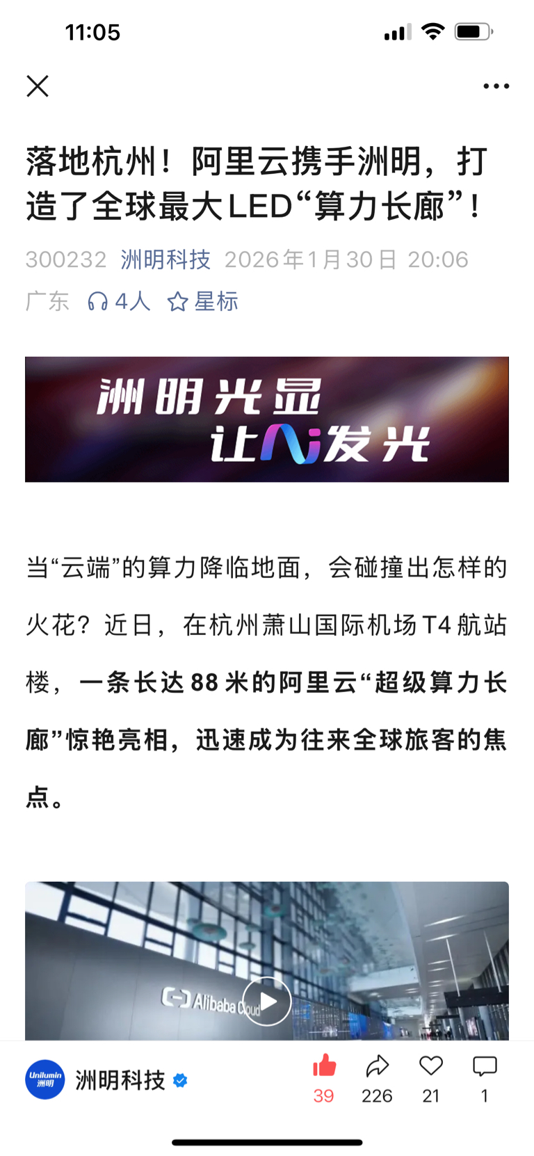 $洲明科技(SZ300232)$ 洲明科技公众号,技术应该还是挺厉害的,周一看情况买点回来