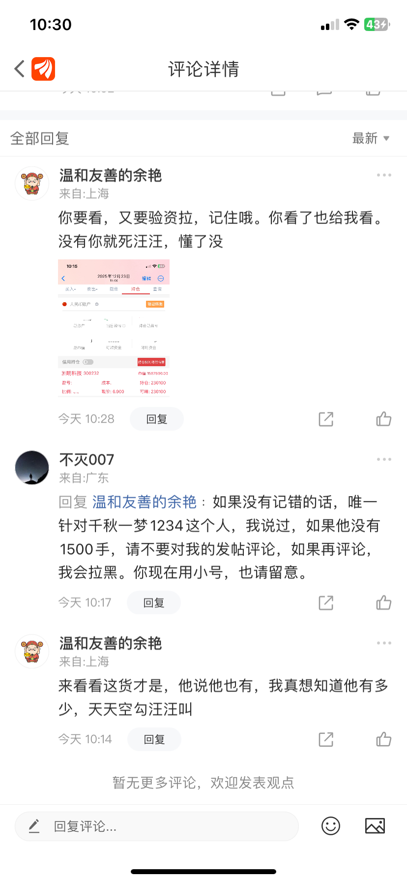 $洲明科技(SZ300232)$ 我千秋一梦。记住这个不灭007哦,真不是我找他事,当初自诩高人,唱空,和他理论,人家要验资,先说有1000手,后来又改1500手才能配和他说话,今天打他脸,我放了,让他也拿出来,拿不出,以后他说话就当汪汪了,有圈的给他一个。懂的都懂,解气