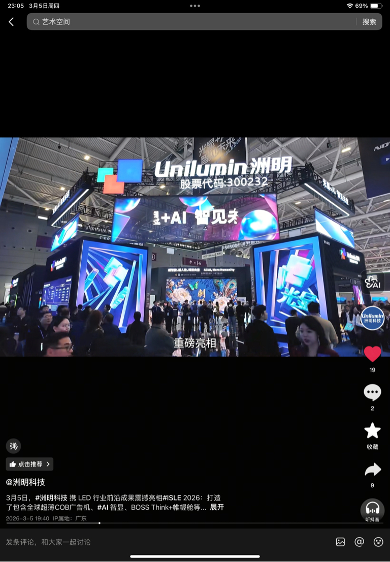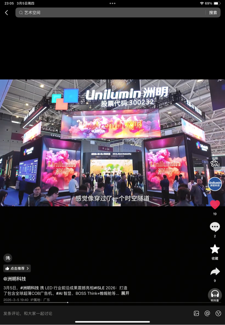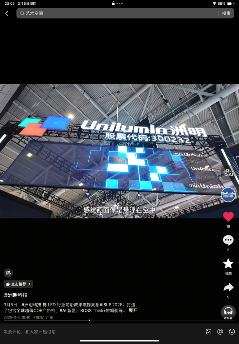 $洲明科技(SZ300232)$ 我建议买票一定要去了解这家公司质地,就像我一如既往支持它就是因为看到了这家公司对自己领域的科技创新和提高一直在孜孜不倦。你只有真正了解了它的潜在成长能力你才会更有信心的去持有它家的票,因为你从中能看见它的无限可能和未来,建议大家去看看这次lsle洲明的原版视频,真的很赞