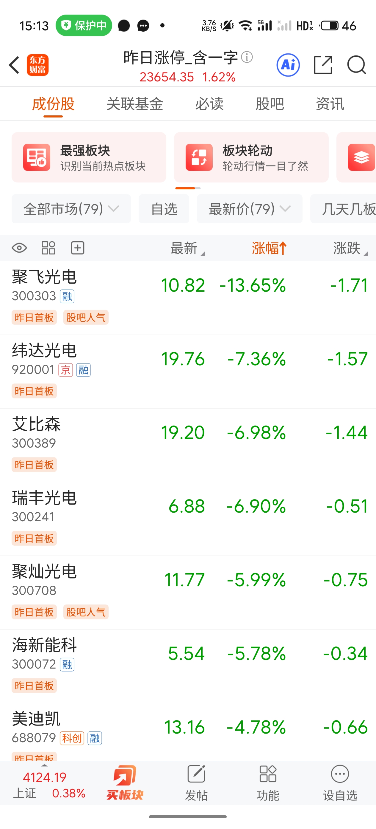 昨天封板的,今天集体趴窝,洲明昨天炸板,却只回调了四个点,很可以了