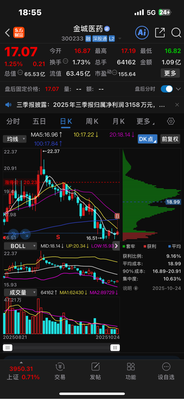 $金城医药(SZ300233)$ 不好意思是我把业绩买崩了,星期一我走!!