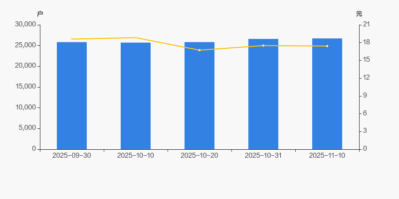 自2025年10月10日以来,公司股东户数连续3期上涨,截至目前增幅为3.95%。2025年10月10日至2025年11月10日区间股价下降7.54%。