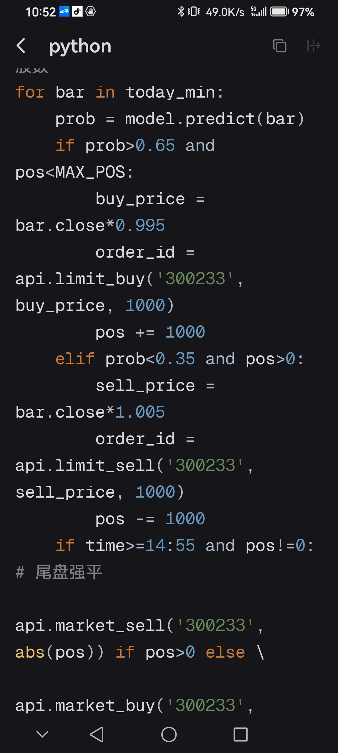 $金城医药(SZ300233)$ 发一个量化交易代码。