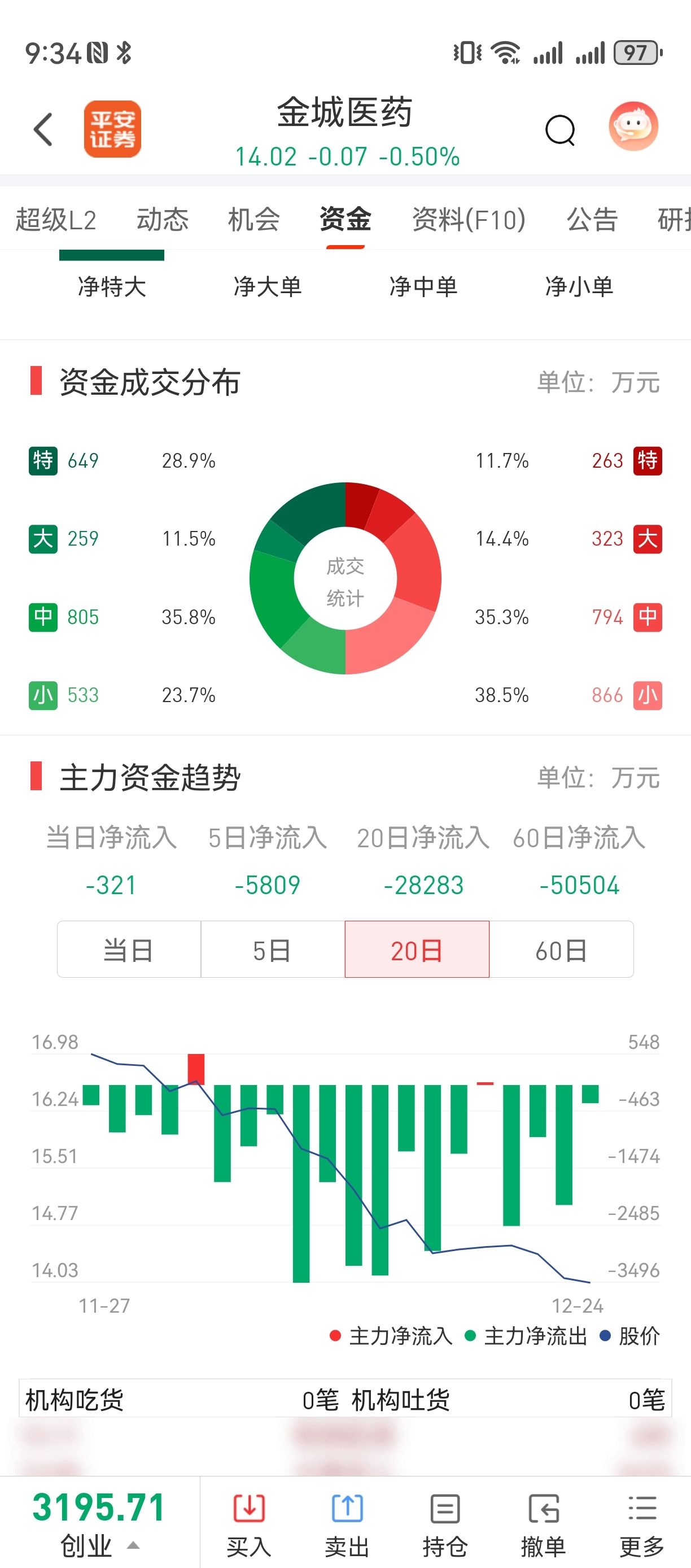 $金城医药(SZ300233)$ 这20天主力出的量,天天在出