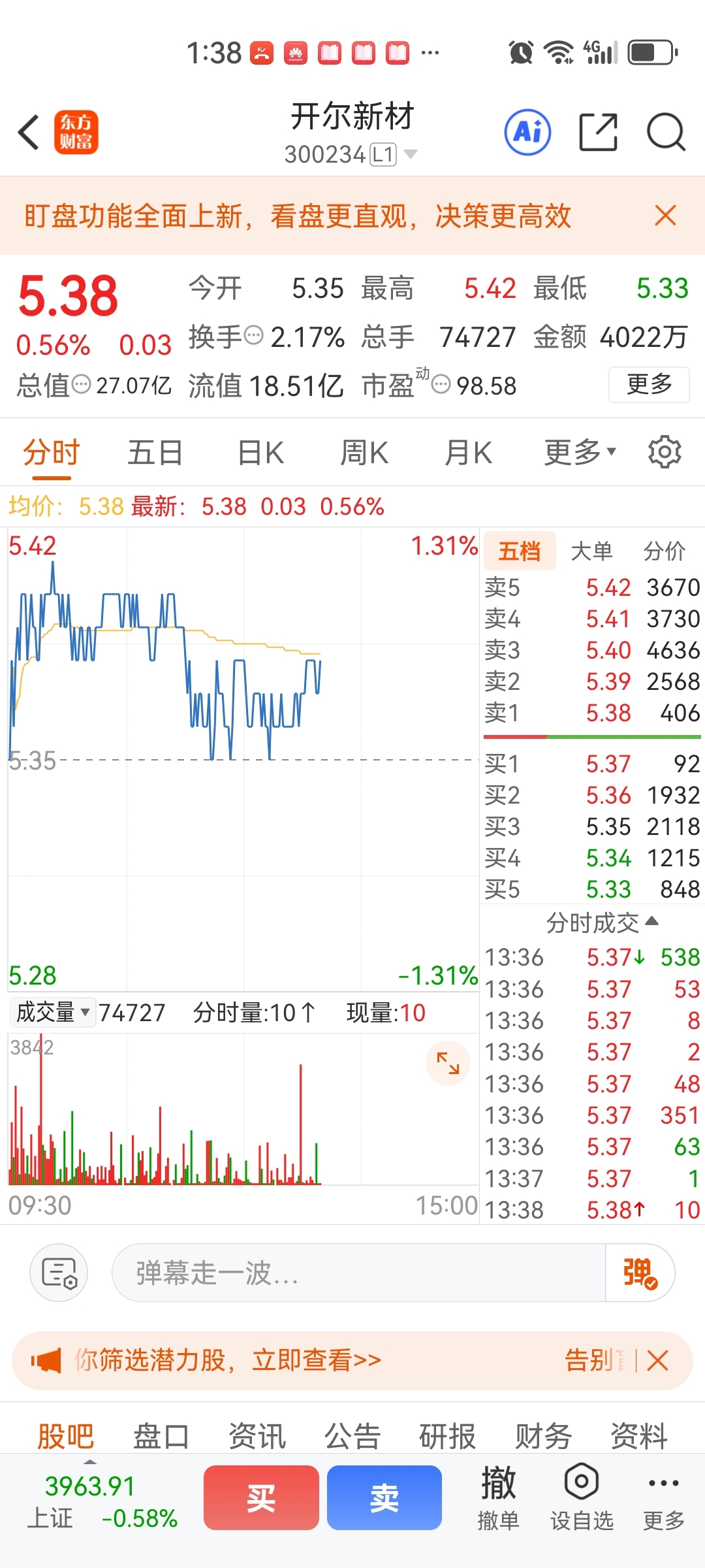 $开尔新材(SZ300234)$ 压单的家里买金瓜财了?
