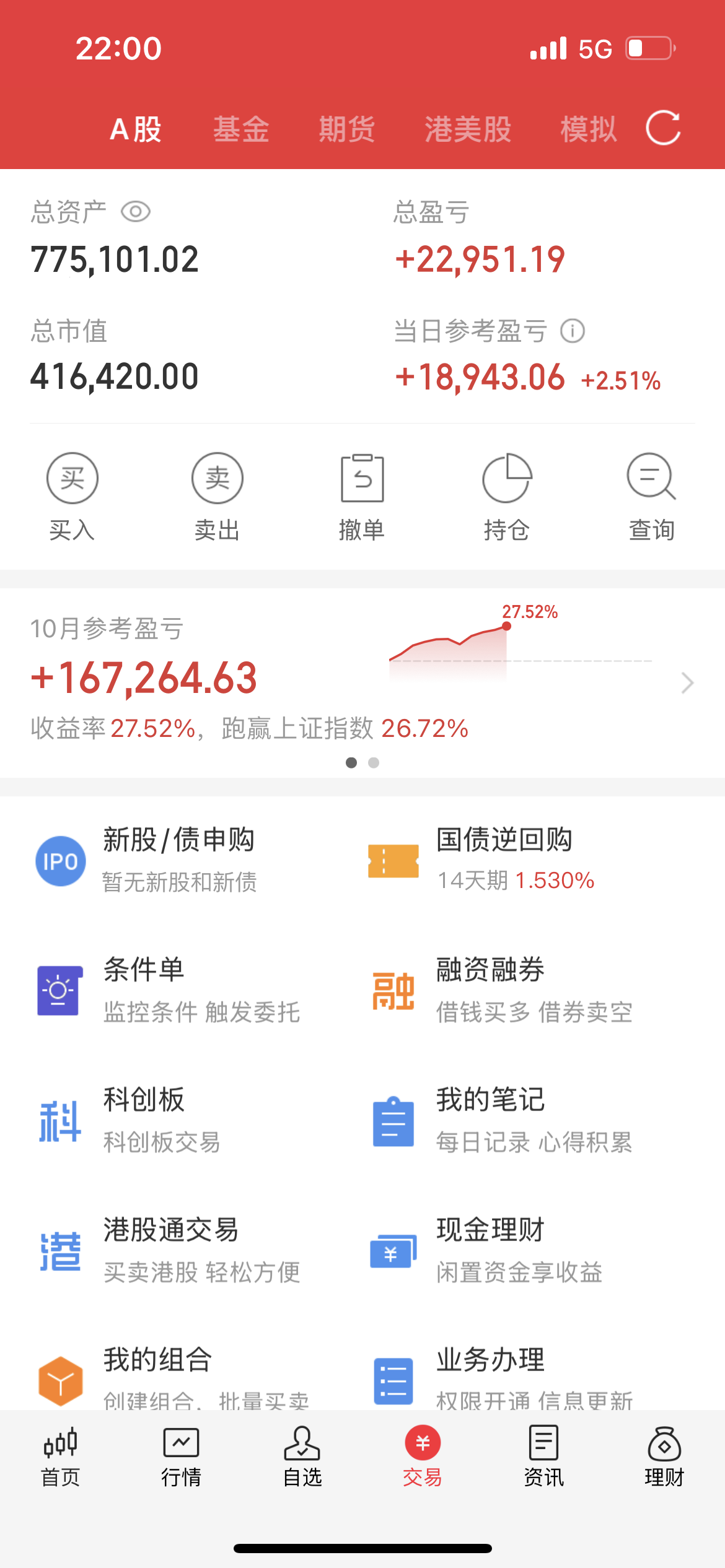 50万实盘,目前净值77.5万,这两天经过三联锻造和方直科技的拉升,净值创了新高