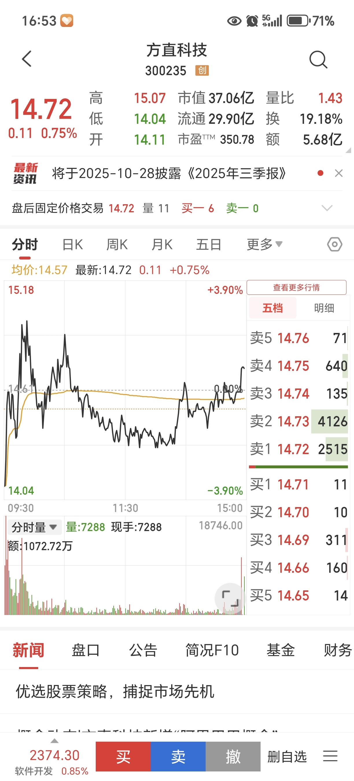 $方直科技(SZ300235)$ 昨天买的,先格局几天,今天震的人发昏。最多格局到下星期三。