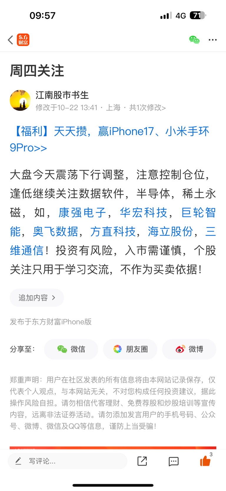 温馨提示: 1.根据《证券法》规定,禁止编造、传播虚假信息或者误导性信息,扰乱证券市场;2.用户在本社区发表的所有资料、言论等仅代表个人观点,与本网站立场无关,不对您构成任何投资建议。用户应基于自己的独立判断,自行决定证券投资并承担相应风险。《东方财富社区管理规定》